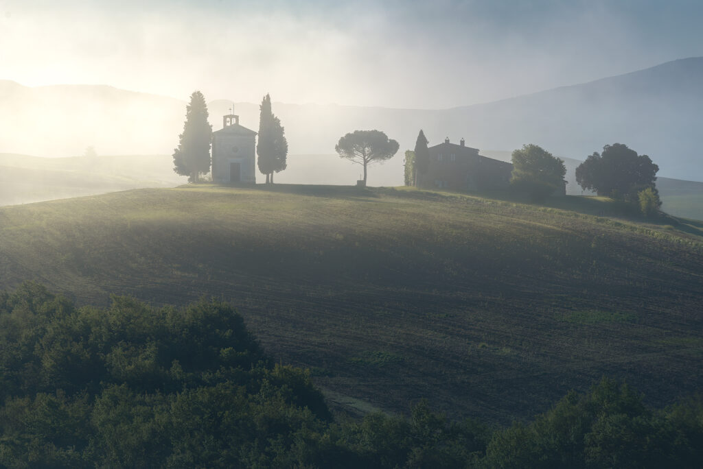 Tuscany is certainly one of the most beautiful regions from this point of view. Rich in sinuous hills with unique shapes and beautiful farmhouses that rise above them. In the area of the Val d’Orcia and the Crete Senesi you can find quite varied scenarios that allow you to take beautiful photos at all focal lengths.