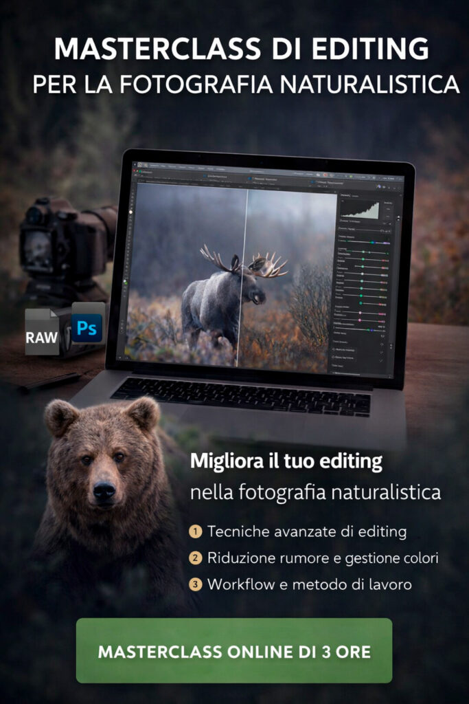 Questa masterclass è pensata per fotografi naturalisti, appassionati di wildlife photography e fotografi che desiderano migliorare il proprio approccio alla post produzione, rendendo le immagini più curate e più solide dal punto di vista tecnico.