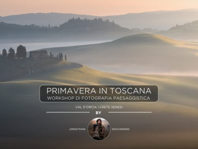 La primavera è uno dei momenti migliori per fotografare la Val d’Orcia e le Crete Senesi. Le colline verdi, i campi in fiore, la luce morbida delle prime ore del giorno, le nebbie mattutine e i tramonti sulle forme sinuose del paesaggio rendono questo periodo particolarmente adatto per costruire immagini forti, pulite e riconoscibili.